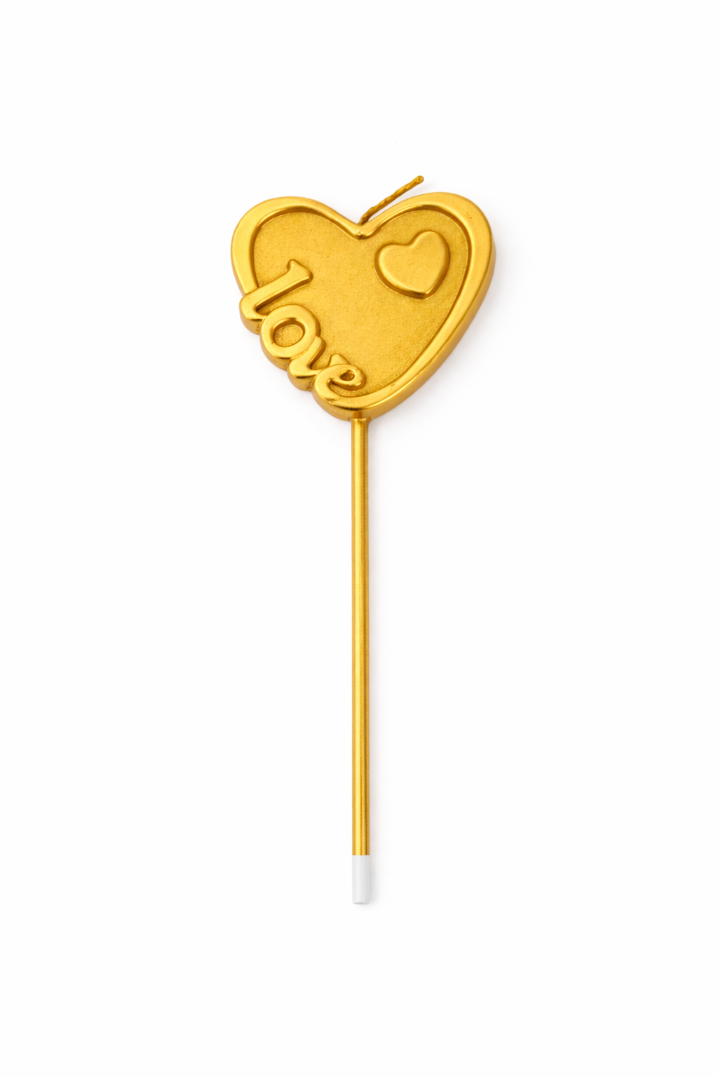 1 Adet Love Yazılı Gold Renk Kalpli Mum