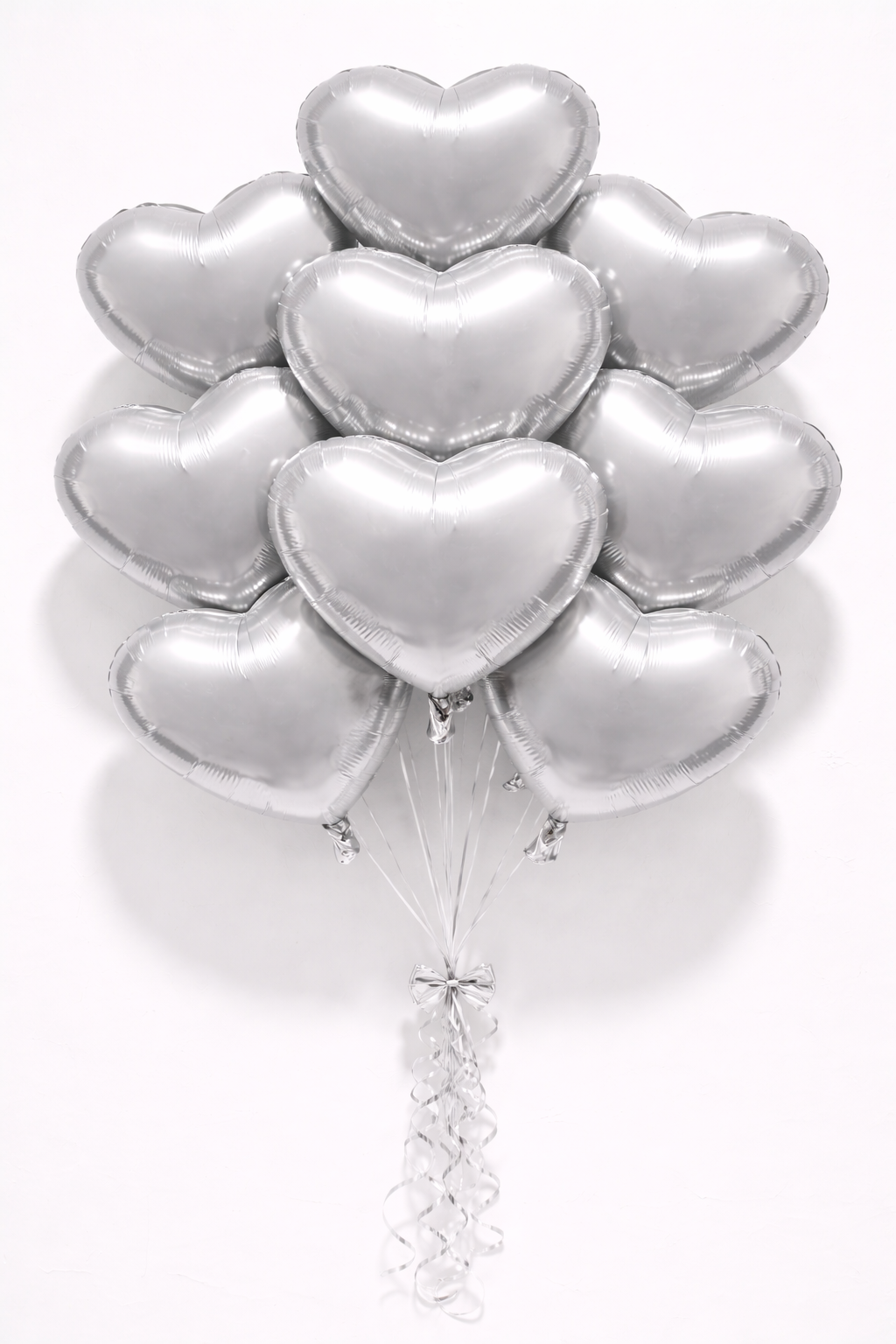 10 Adet 18 İnç Gümüş Kalp Folyo Balon