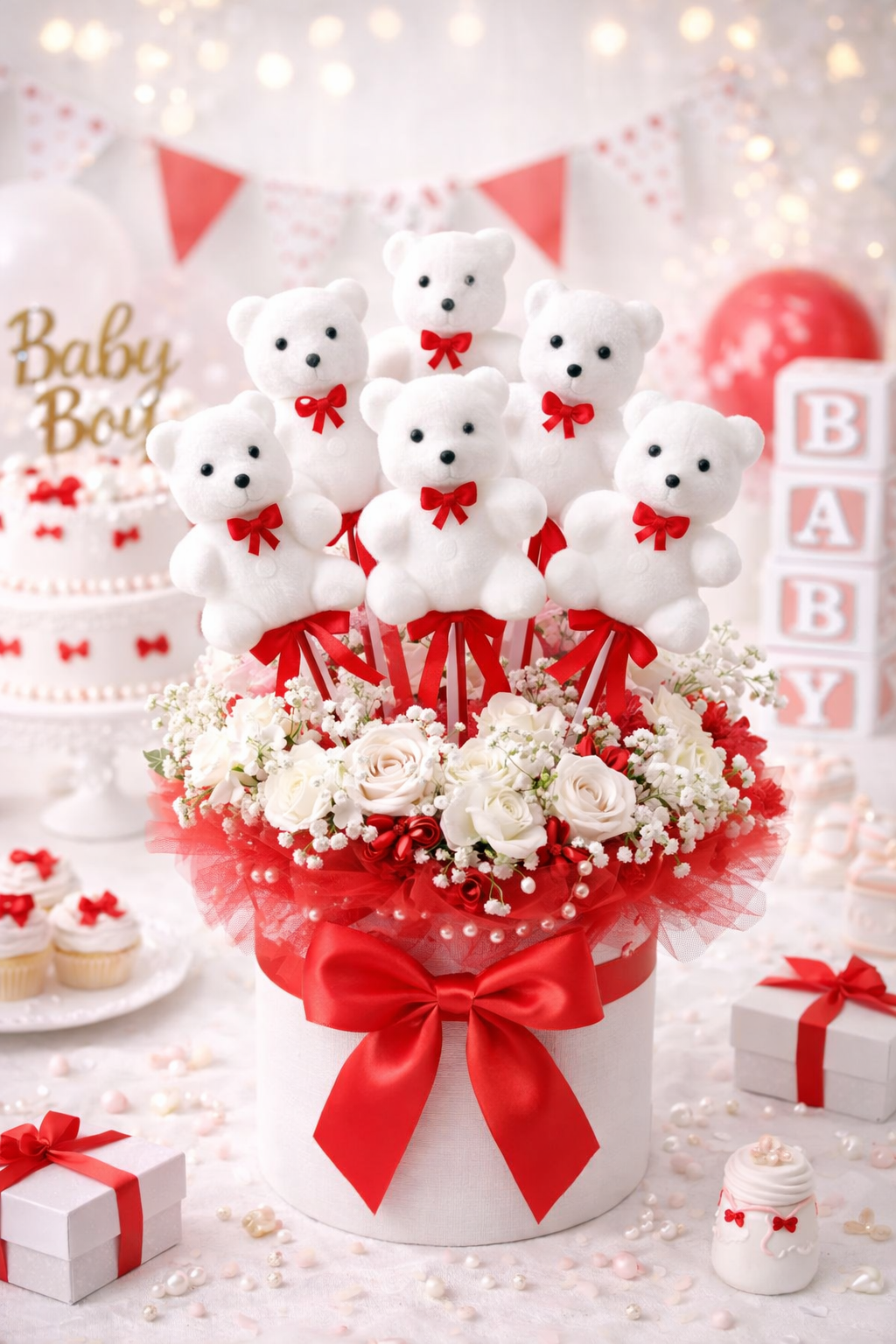 10’lu Mavi Şapkalı Ayıcıklı Süs Seti – Organizasyon & Çiçek Dekoru