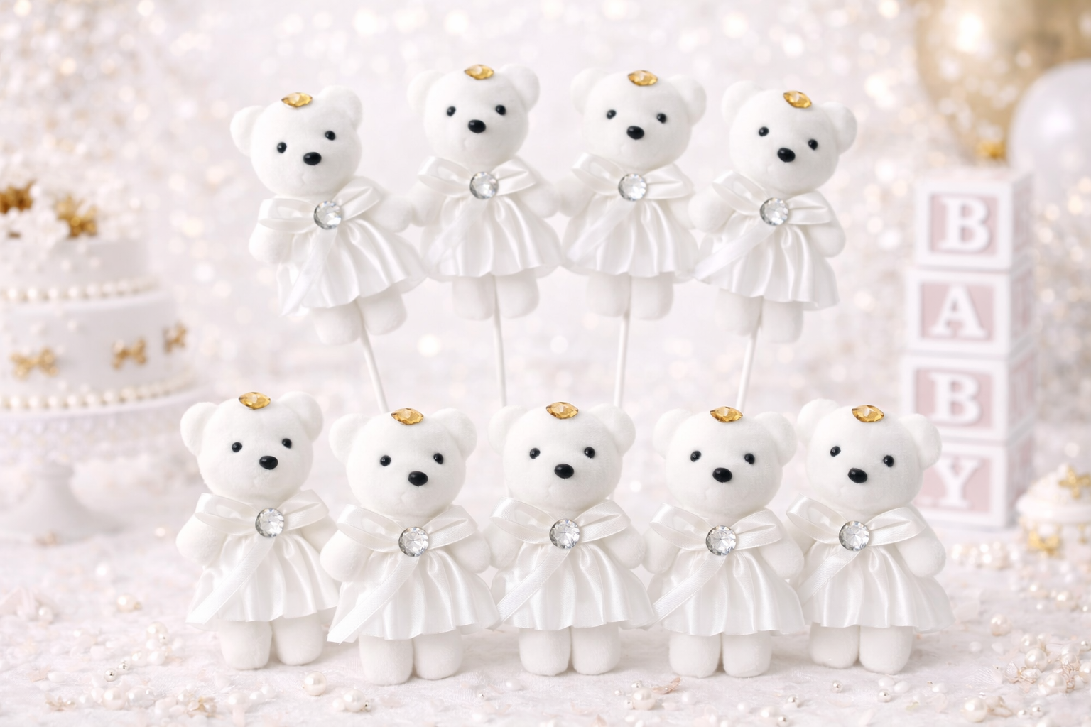 10’lu Beyaz Strafor Köpük Ayı Seti – Delikli, Çubuklu Süsleme ve Hediyelik Yapımına Uygun