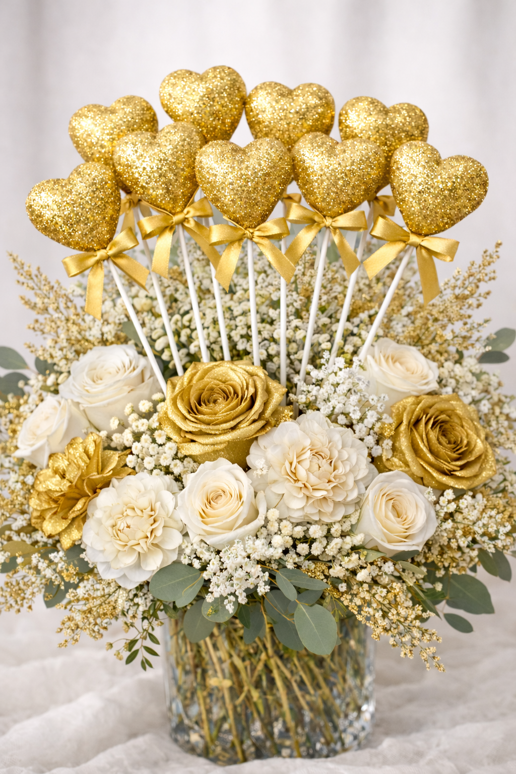 / 10’lu Gold Köpük Kalp Çubuk Süs – 27 cm Dekoratif Parti ve Organizasyon Süsü