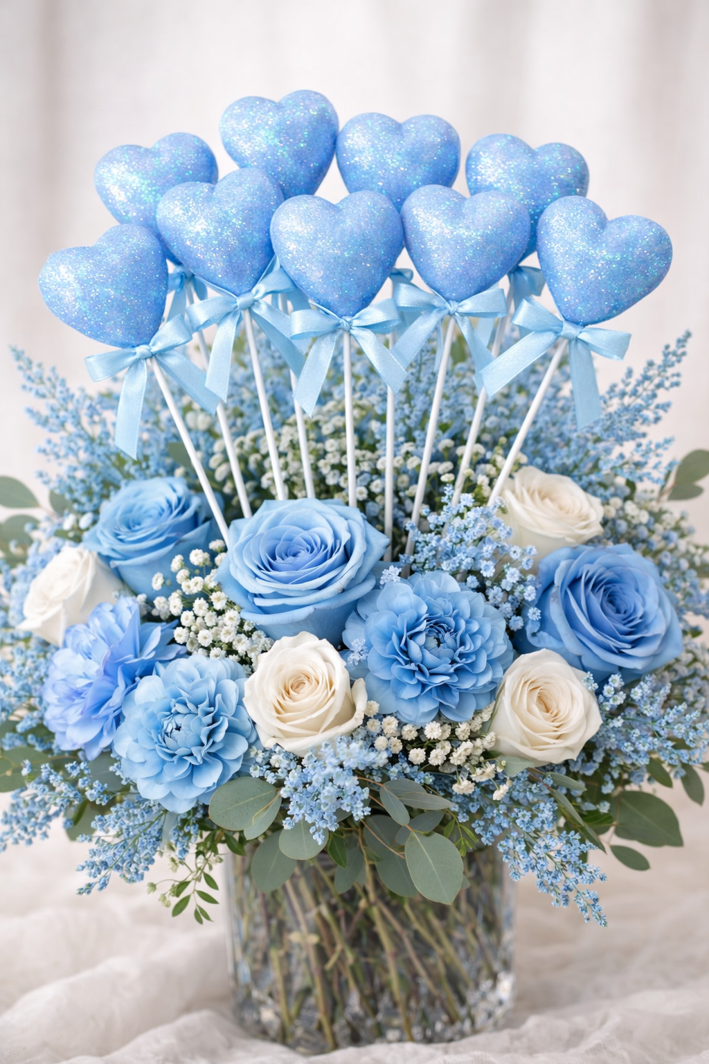 / 10’lu Mavi Köpük Kalp Çubuk Süs – 27 cm Dekoratif Parti ve Organizasyon Süsü