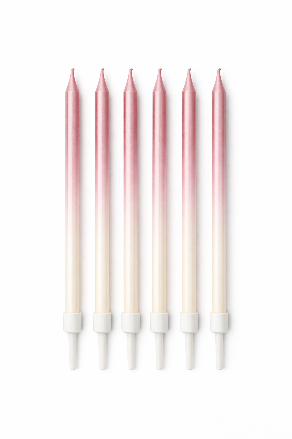 6'Lı Geçiş Efekti Açık Pembe Beyaz Renk Mum adet