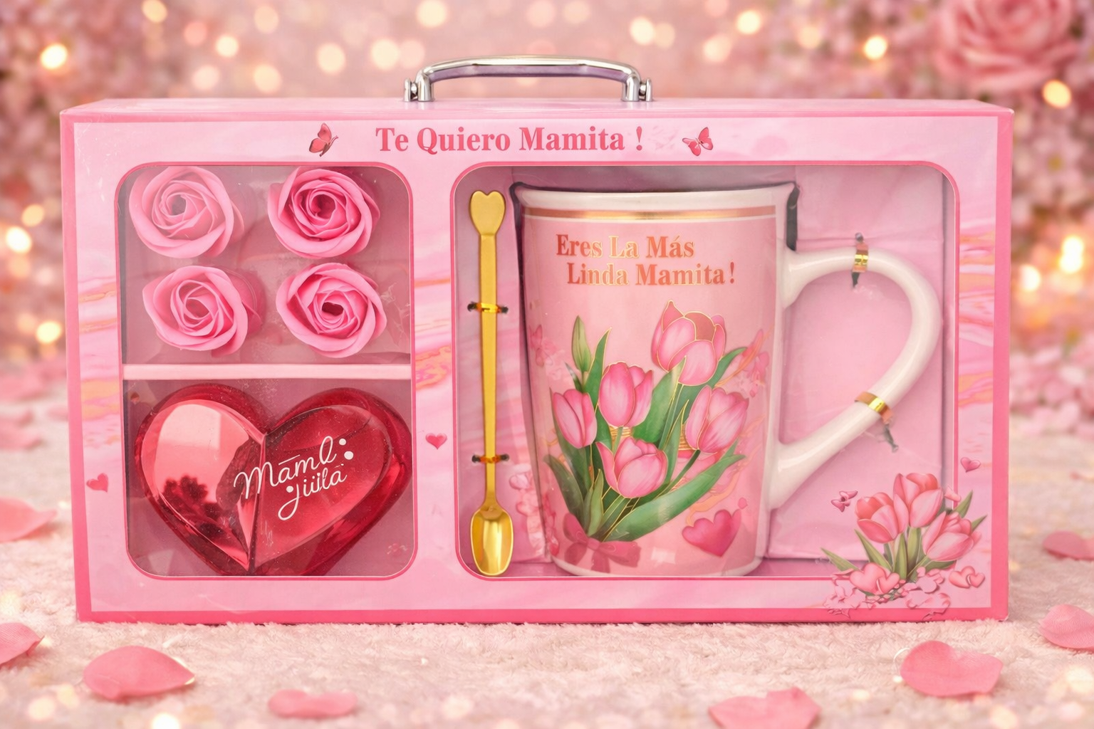 Anneler Günü Temalı Parfüm, Kupa, Kaşık ve Dekoratif Gül Hediye Seti ENG-KB-31