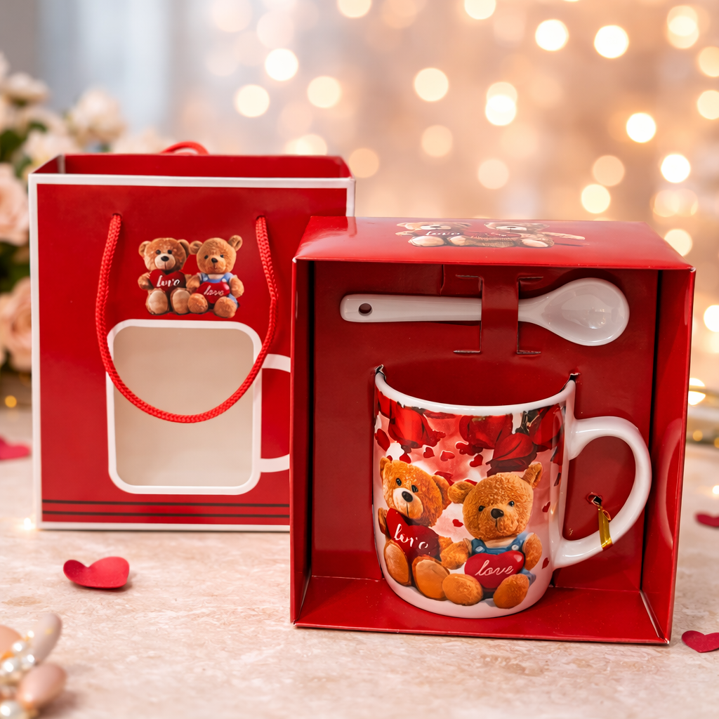 Love Temalı Ayıcıklı Kupa ve Kaşık Hediye Seti ENG-KB-23-1