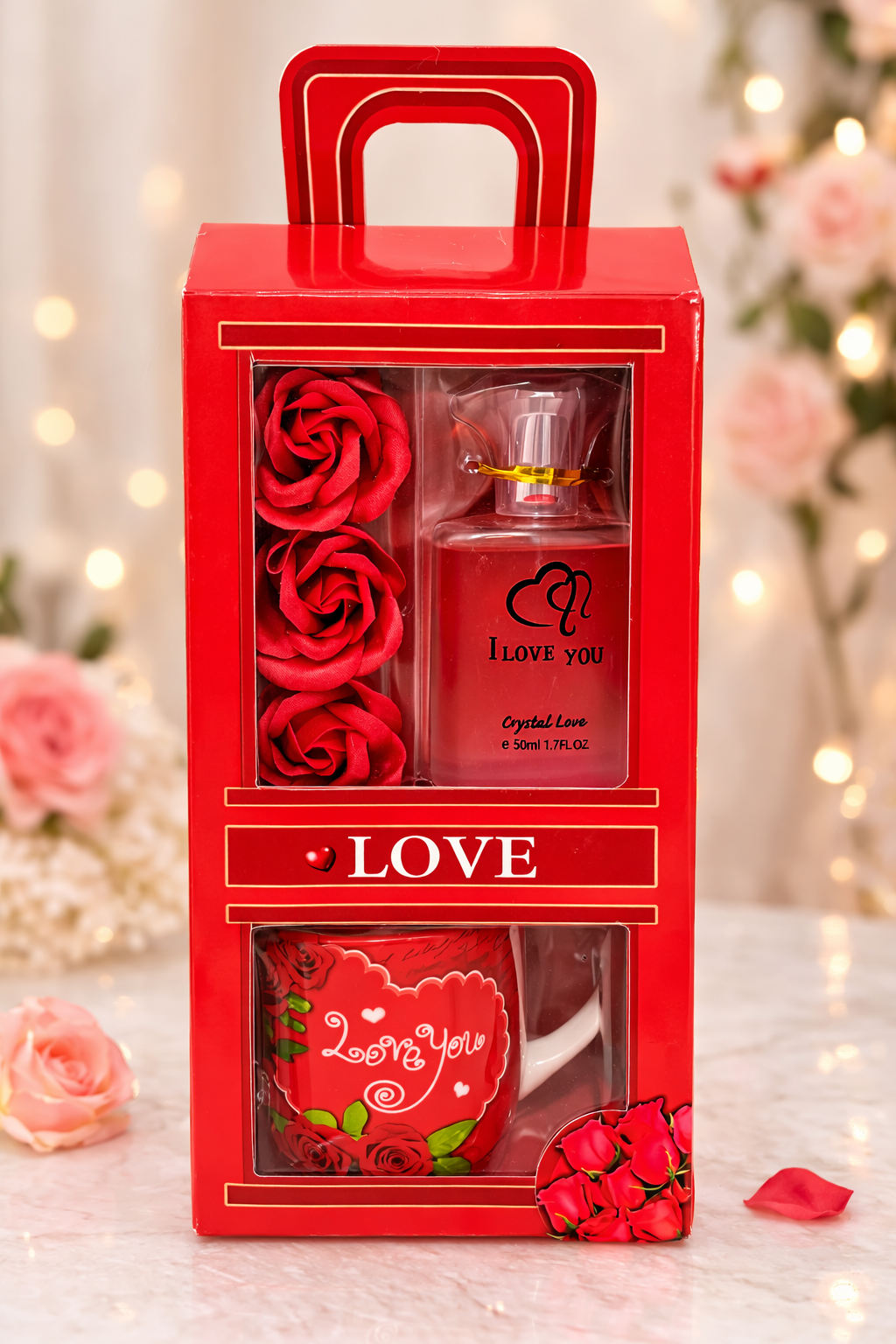/ Love Temalı Parfüm, Kupa ve Gül Hediye Seti ENG-KB-04