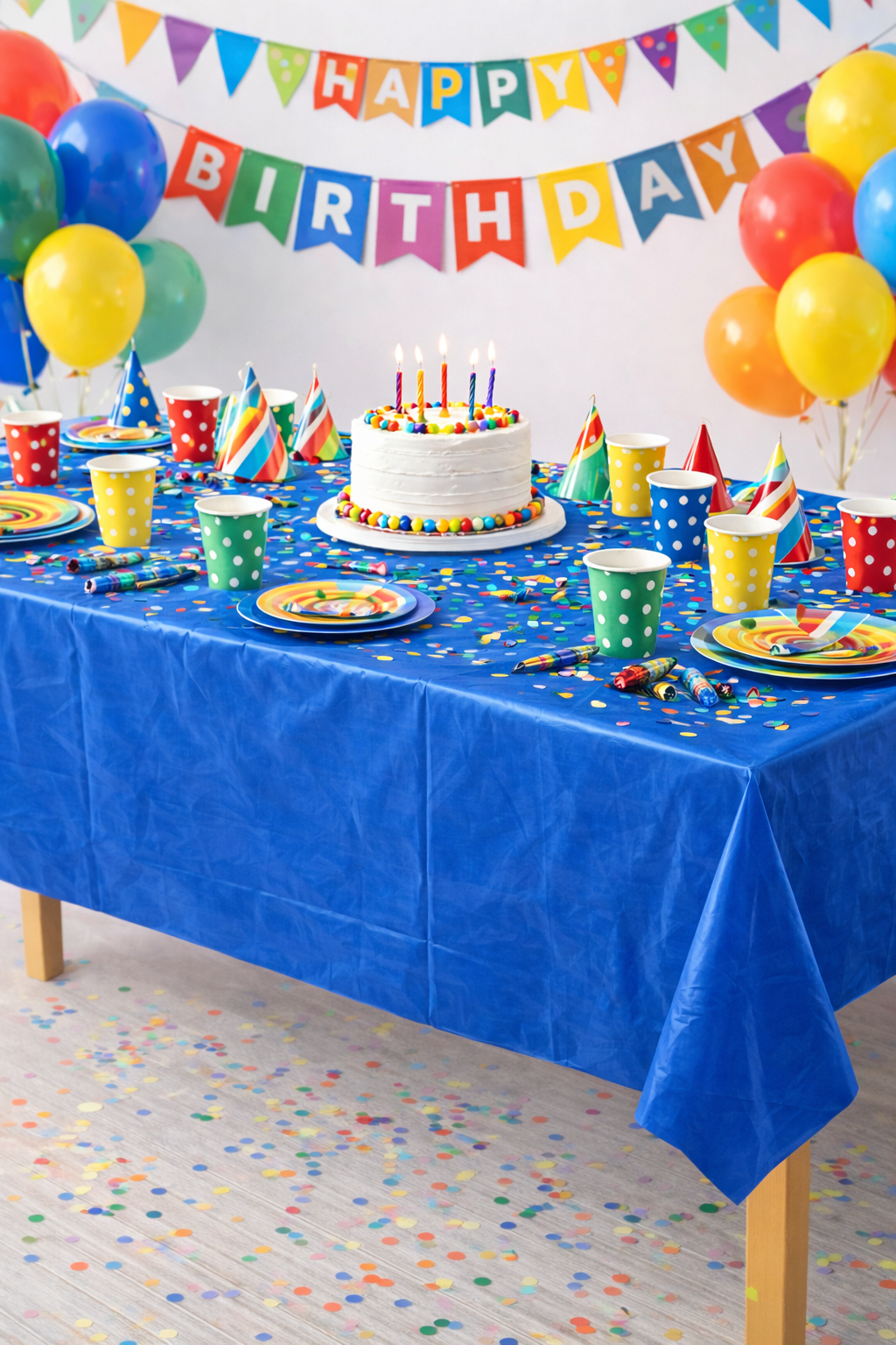 Parti ve özel günlerinizde masalarınıza şık ve düzenli bir görünüm kazandırmak için tasarlanan plastik masa örtüsü, pratik kullanımı sayesinde organizasyonlarınızın vazgeçilmez tamamlayıcısıdır. Doğum günü, kutlama, davet, baby shower ve benzeri etkinliklerde masanızı hızlı ve kolay şekilde hazırlamanıza yardımcı olur.