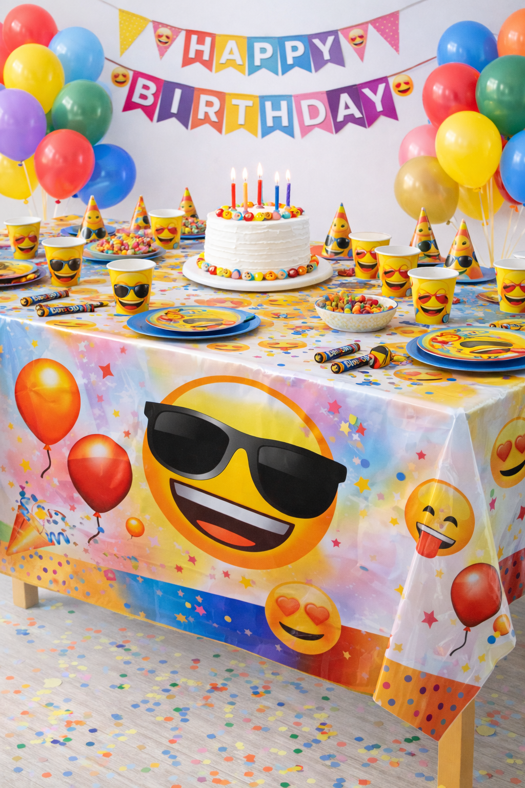 Emoji Desenli Plastik Masa Örtüsü