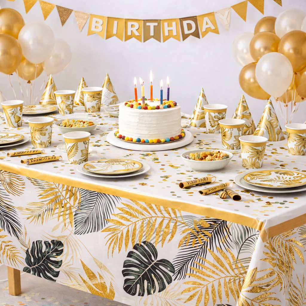 Parti ve özel günlerinizde masalarınıza şık ve düzenli bir görünüm kazandırmak için tasarlanan plastik masa örtüsü, pratik kullanımı sayesinde organizasyonlarınızın vazgeçilmez tamamlayıcısıdır. Doğum günü, kutlama, davet, baby shower ve benzeri etkinliklerde masanızı hızlı ve kolay şekilde hazırlamanıza yardımcı olur.