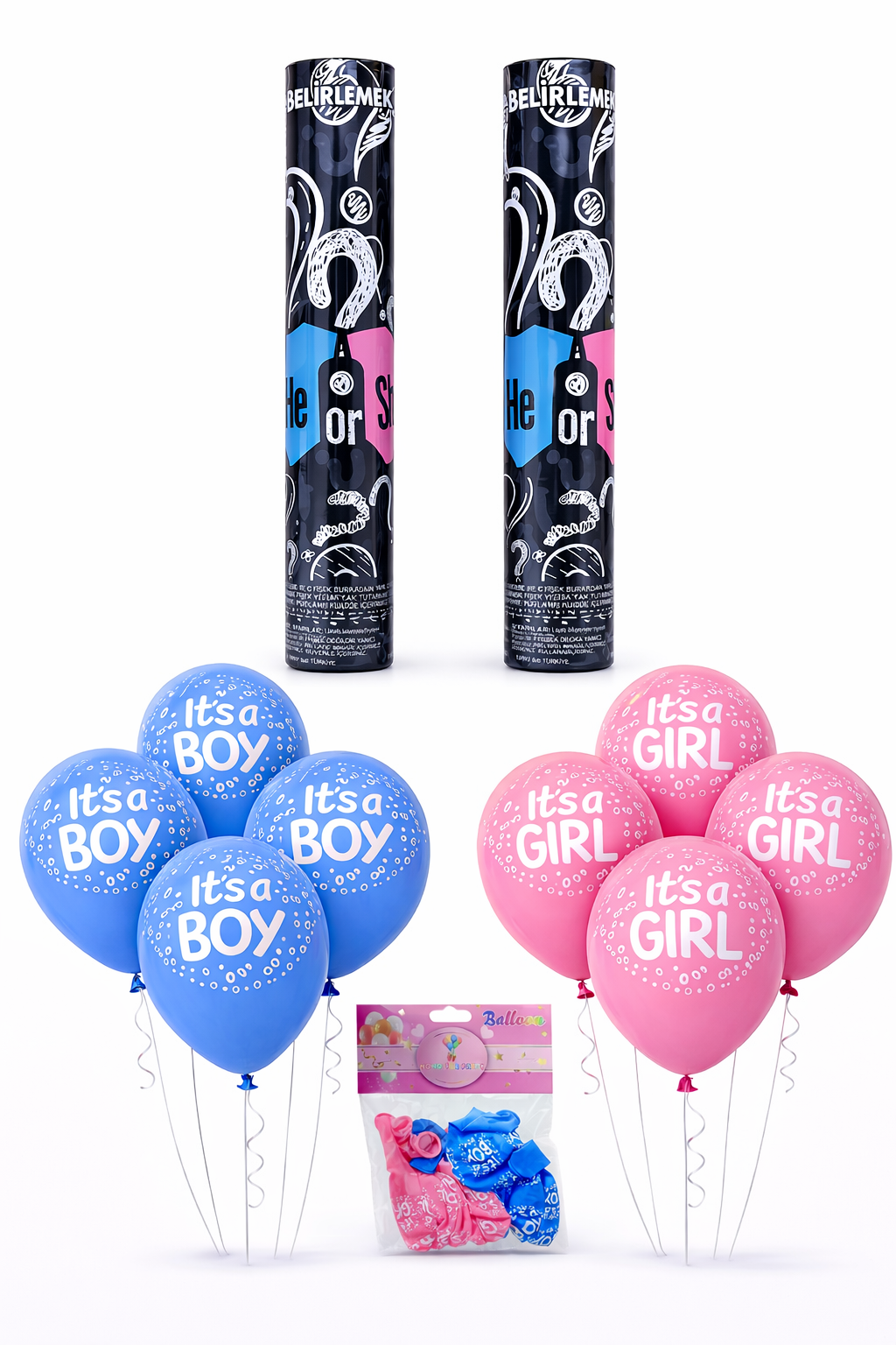 Pembe Renk Baby Shower Seti – 2 Adet Pembe Konfeti – 10’lu Balon