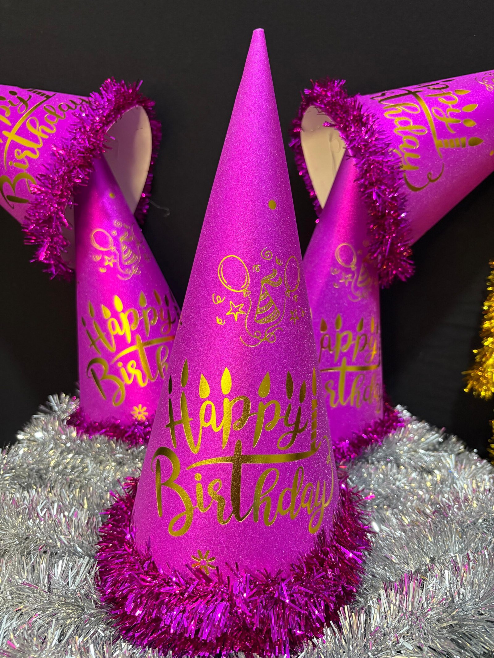 Simli Mat Pembe Happy Birthday Parti Şapkası 35 cm 6’lı Set Tüylü Doğum Günü Süsü Şapka | ENG-602 |
